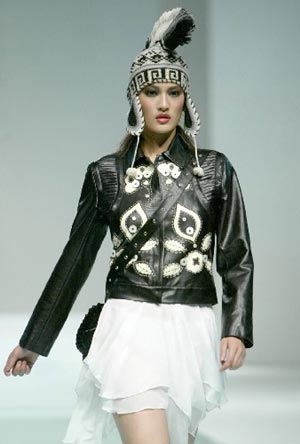 3月29日,在2004/2005秋冬中国国际时装周中“第五届中国时装设计奖”大赛上,一名模特在展示获得一等奖的西华大学学生曾白子的参赛作品。当日,“第五届中国时装设计奖”大赛结果在北京揭晓,共评选出一等奖1名,二等奖2名,三等奖3名。20名参赛选手均为在国内外时装设计大赛中的获奖选手。