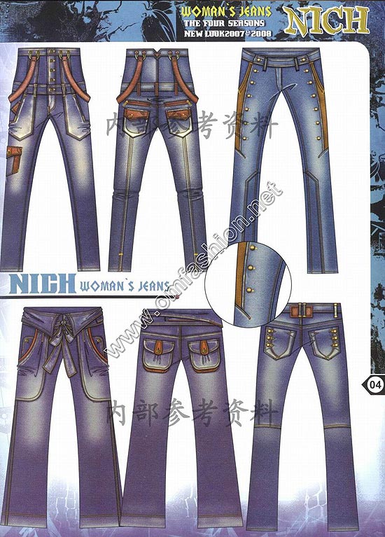 08春夏欧美女装绣花牛仔裤手稿(图)