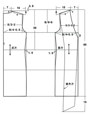连衣裙成衣尺寸:肩宽:34厘米,胸围B:90厘米,衣长:85厘米