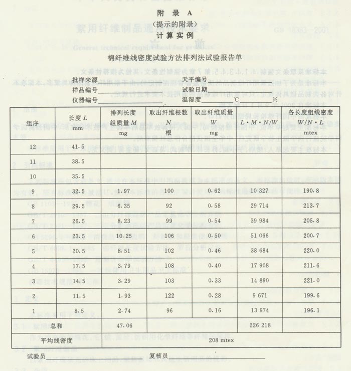 本标准适用于原棉或棉卷、棉条等半制品线密度的测定,也可用于试样内各长度组的线密度测定。
