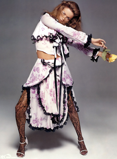 时尚不只是社会与生活的一面镜子而已。法国诗人波特莱尔人为自己创造了唯美的概念,体现在所穿的服饰和所摆的姿态上,久而久之,这些唯美概念甚至巧妙地穿透了其面容相貌。线条是柔软、随意的情调,布料是飘逸的轻纱、蕾丝与雪纺,色彩是蔚蓝、鲜红、翠绿、粉红的明亮色。那么当流行时尚遇到了浪漫会发生什么呢?