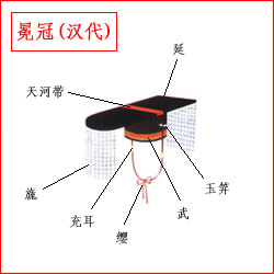 帽卷 即帽身,图中没有标出。帽卷夏用玉草、冬用皮革作骨架,表裱玄色纱,里裱朱色纱做成。