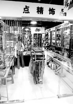 也许正是因为这个简单的道理,在以女人用品见长的女人街,虽然服装占了绝对优势的数量和地位,但是几家别具特色的饰品小店却并未被淹没在众多的服装店铺中,“点精饰品”就是其中的一家。它坐落在女人街的金街上,虽然位置没有太多优势,却足以能把过往的女人们吸引进来。