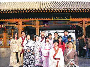 日前,在北京海淀区的一间茶楼内,一群穿着宽袖长袍的年轻男女吸引了茶客们的目光。