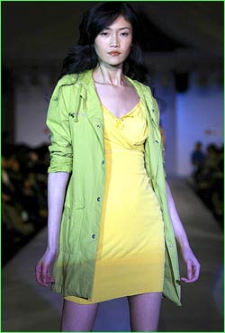 Trenches,夹克和休闲裤在柔滑面料的使用上显示出运动服的风格,比如使用醋酸纤维,棉,特别打亮的运动衫,或有如珍珠般光彩的亚麻。配以不完全对称的剪裁和新颖衣型的针织衫适合女性穿着。
