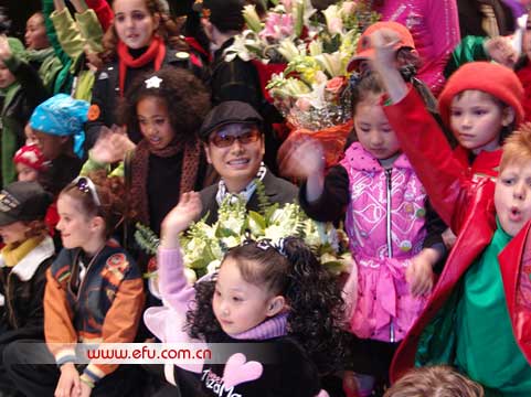 4月1日,北京的天空刚刚暗下,就下起了起丝丝细雨,好似为即将开始的“宝贝——刘洋·兔仔唛2005秋冬‘儿童时装’发布会”作一个小小的洗礼一样。来自全国各地的近千名的观众在北京新城-国际内有幸参观了此次在中国童装历史上最盛大的一次发布秀。