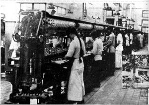 ![]() 1935年建成的广东纺织厂初期的生产车间。 |