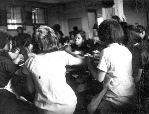 ![]() 当时·今日:纺织女工聚在一起用餐的场景,变了的只有色彩。 |