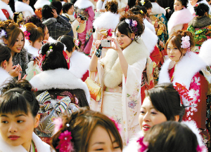 不过到了今天,日本社会人口结构的改变也开始打破这种传统。日本年轻人结婚的数字开始减少,而结婚的新人大多选择西式婚纱而不是传统的白色结婚和服。此外,日本人口出生率下降造成初生婴儿数字减少,这意味着需要穿和服参加成人礼的人数也在减少。