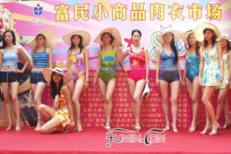 5月15日上午10时,期待已久的富民内衣秀在富民小商品内衣批发市场揭开神秘面纱,包括富民模特在内的数十名模特闪亮登场,倾情演绎富民内衣,给观众带来了一道别具韵味的周末大餐。此次展出的服装全部是富民小商品内衣批发市场的商品,伴随着时而动感时而舒缓的旋律,在场者美美地领略了宝马、梦美人、英姿等十家内衣的独特风韵。