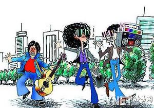 其实就是太阳镜,由于其夸张的造型而被人形象地戏谑为蛤蟆镜。喇叭裤+蛤蟆镜+大波浪,再加手提单卡录音机,是当时街头无业青年的典型形象。