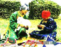 在古代,蒙古族不论贵族妇女,还是贫苦的妇女,都学习掌握刺绣。蒙古族姑娘从小就学习刺绣,掌握家中各种针线活儿的技能,当然这种学习是没有专门的学校和教师指导的,主要是从母亲熟练的针线、刺绣中得到启发和培养的。少女从十来岁就开始学习刺绣,开始时绣各种荷包、袜底,到十五六岁掌握了一定刺绣方法后就开始绣各种花鞋、马海靴等,同时可以剪裁各种衣服,有些聪明能干的姑娘不满足于从母亲那里学到的刺绣技巧,就去求教于本村的一些巧绣能手,称她们为姐姐,从她那里耐心地学习各种高超的刺绣技巧,并缝制各种衣帽等,学习绣各种套袖、衣襟、耳套的制作方法,在各种不同的底布上刺绣各种花卉,鸟兽,以及各种自己所喜欢的图案。有些姑娘因刺绣的优美而得到周围人们的称赞,同时引起其它姑娘们的羡慕。蒙古族自己所用的衣帽、花鞋、靴子、针扎、碗袋、枕套、鞍具、门帘等所有生活用品都是用自己的手精心地设计和刺绣出来的,所以蒙古族姑娘和妇女家庭刺绣和针线活儿的劳动量是十分繁重的。 在古代的蒙古社会中是不出售各种衣帽等生活用品的,各种用品和刺绣品全部由每个家庭中的妇女来担负,因为自己做的是根据使用对象和身体情况不同而制做的。家中女儿到十七八岁或二十岁,刺绣的能力达到比较熟练的时候,在进一步学习刺绣的同时,还要进行家教,在出嫁前都要给婆家的每一个人做一双“斯布登高吐拉”,这种“斯布登高吐拉”就是从娘家带给婆家全家的见面礼,从一般家庭看也得做五十几双鞋和靴子,特别是给新郎做的靴子就要更加细心,其造型和图案的花纹也十分讲究,刺绣的技巧也十分精细,同时还要给新郎精心刺绣八个飘带的烟荷包,这些都是在出嫁前赶制的。