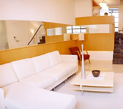 客厅和餐厅的过渡,让人在不同的空间得到放松。客厅和餐厅的结合是现代居室当中呈现的又一种趋势,此方案中在两个空间过渡区中用弧形门廊,并安置射灯使空间过渡显得别致自然,让整个居室空间遍洒温情。