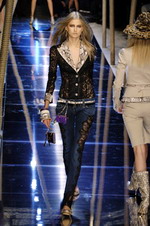 这一季的Dolce & Gabbana,把最具女人味的蕾丝和牛仔配合起来,妖冶中又自有矜持,配上短上衣、细皮带,一个贵气而不失性感的淑女就诞生了。想自己DIY的话,一定要记得选择质料好、色彩不俗的蕾丝牛仔裤,发型的协调也很重要哦。