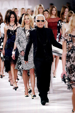 夏奈尔品牌的第二代设计师卡尔·拉格菲尔德,在继承了夏奈尔的经典风格的同时,又加入了更加明快鲜亮的元素。我们依旧可以见到熟悉的粗花呢套装,堆积于颈部的人造首饰,以及充满自信的时髦女性形象。2005的夏奈尔新装系列,又一次以绚烂的色彩、女人味的气质,在世界的T台上大放异彩。