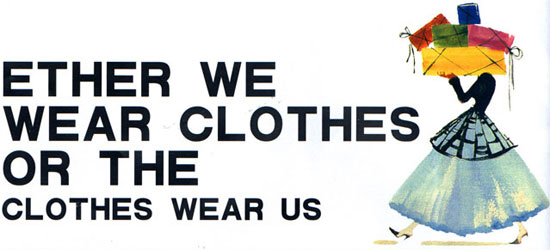 是我们在消费服装,还是服装在消费我们?这是我们要回答的首要问题。在这个问题上,精英有精英的立场,“小资”有“小资”的选择,无产阶级有无产阶级的苦衷。生活在“第五季”的人们的立场是,既不要折磨服装,也不要服装折磨我们。只有解放了身体,才能解放服装;只有解放了服装,才能解放我们自己。