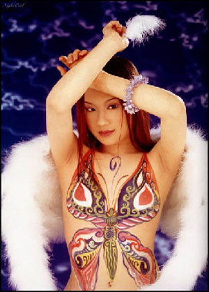 前卫化妆 又称“人体彩绘”,这是目前在欧美较为流行的一种新潮化妆方法。其方法是,化妆师将顾客人体当作画布,直接在人体皮肤上绘画,以色彩表现代替服饰,具体操作过程为:先将黑色淡淡地抹在人体上作底色,再用不同的色彩描绘出各种花纹和图案,最后在图案上贴上钮扣、亮片、珠宝等。化妆后,尤其在灯光下,常可达到以假乱真的效果。