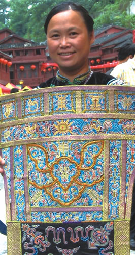 水族马尾绣工艺,是水族妇女世代传承的、以马尾作重要原材料的一种特殊刺绣技艺与方法。这是水族独有的、贵州特有的、濒临失传的民间传统绝活工艺。是研究水族民俗、民风、图腾崇拜及民族文化的珍贵艺术资料。