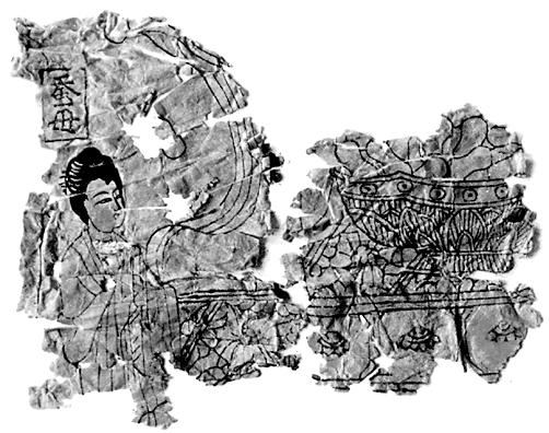传说中的“蚕母”雕版印刷像,北宋,温州国安寺出土。