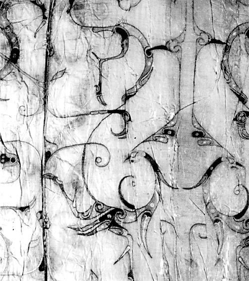 花枝龙凤纹绣,战国,湖北江陵马山出土。