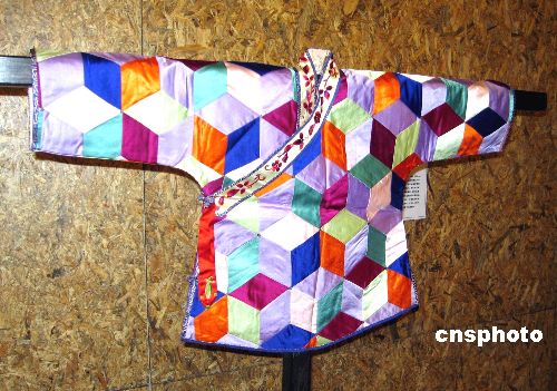 把来自周边一百户人家的碎布块缝成“百家衣”给刚出生的婴儿穿上,是中国传统的民间习惯。三月十六日在上海开幕的中国服饰艺术博物馆近代童装展上,一件明代“百家衣”格外吸引人。据专家介绍,这件百家衣布纹的走向、拼图等都有一定规矩,特别是衣服的领口不能开在胸前,而要做成偏开口的大襟衫,又称为道袍衫,寓意着孩子今后将多福多。