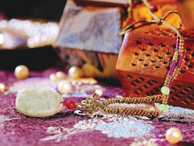 中国结由于年代久远,其历史贯穿于人类史始终,漫长的文化沉淀使得中国结渗透着中华民族特有的、纯粹的文化精髓,富含丰富的文化底蕴。“绳”与“神”谐音,中国文化在形成阶段曾经崇拜过绳子。据文字记载:“女娲引绳在泥中,举以为人。”又因绳像盘曲的蛇龙,中国人是龙的传人,龙神的形象,在史前时代,是用绳结的变化来体现的。“结”字也是一个表示力量、和谐,充满情感的字眼,无论是结合、结交、结缘、团结、结果,还是结发夫妻,永结同心,“结”给人都是一种团圆、亲密、温馨的美感。“结”与“吉”谐音,“吉”有着丰富多彩的内容,福、禄、寿、喜、财、安、康无一不属于吉的范畴。“吉”就是人类永恒的追求主题,“绳结”这种具有生命力的民间技艺也就自然作为中国传统文化的精髓,兴盛长远规划,流传至今。现在世都向外国朋友赠送中国结,不仅因为中国结具有造型、色彩之美,而且有着深刻的含义,如盘长结、藻井结、双钱结等,体现了我国古代的文化信仰及浓郁的宗教色彩,体现着人们追求真、善、美的良好愿望。在新婚的喜帖上,装饰一个“盘长结”,寓意一对相爱的人永远相随相依,永不分离。在佩玉上装饰一个“如意结”,引申为称心如意,万事如意。在扇子上装饰一个“吉祥结”,代表大吉大利,吉人天相,祥瑞、美好。和中国结相搭配的,当然是天然真石饰品了,透过它们鲜艳的颜色、简洁的天然本质,最能展现出夏日的浓浓情调。世都百货的东方晓鸣、桑莱丝、梦·妮尔丹都是京城著名的饰品品牌,青柠色和橙色透彻晶莹,色泽清新爽朗,在镶有镀白金色组件的衬托下更显分外夺目;大颗的水晶石奢华夸张,让佩戴者的肌肤或衣物颜色透过首饰若隐若现,散发着无声的魅力。