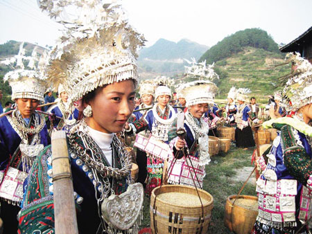 最早到苗族村寨里搜寻苗服的几乎都是台湾人,正是他们把华美的苗服介绍到世界各地,引得各国收藏家纷至沓来。封闭的苗族村寨里,没有多少人知道苗服已经受到追捧,身价开始飙升,他们卖掉家里的旧衣服,只是为了贴补家用。“一套上百年历史的苗族服装,图案精美,农民开价只要100元。”而对于贫困山区的苗族农民来说,自家的旧衣服居然能卖到100元,几乎已经是天上掉下来的横财了。