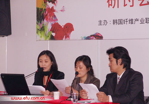 今天上午10~11时在上海世贸商城举行2005/2006秋冬海外女装时装秀流行趋势说明会(米兰、巴黎、伦敦、纽约),这是本次2005年韩国时装纺织品贸易博览会的重要研讨会之一。