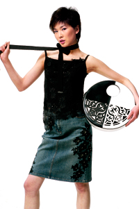 普通的牛仔裙因黑色蕾丝的铺陈而衍生出华丽味道与黑色蕾丝背心的搭配本已天衣无缝却又因为黑白手袋的出现跃升至更加"高级"的穿衣感觉