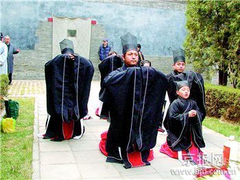 这群年轻人都是国内知名的汉服运动网站——汉网论坛的网友,是中华传统文化、汉民族传统服饰的爱好者,其中年纪最小的只有10岁。清明节这天,12名网友相约身着隆重仪式时才可穿用的祭服,带着美酒、香烛来到位于崇文区白桥大街南口一小区内的全国重点文物保护单位——袁崇焕墓,向民族英雄致以崇高的敬意。