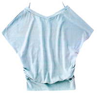 动人的淡蓝色宽肩连袖衫,最适合搭配瘦瘦的仔裤。