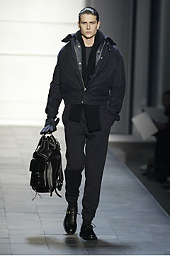 另外,浑身散发法式气息的Paul&Joe,将布料质感、颜色搭配相互融合,散发轻松自在、成熟刚毅与粗犷性感的男性特质,展现本季Paul&Joe和谐动人的法式时尚风采。比利时六君子之一的Ann Demeulemeester,以沉静的黑与白调性与帅气的骑士裤装,散发贵族般的气质。Ozwald Boateng则以酷寒极地的坚毅男性形象,表现主题。