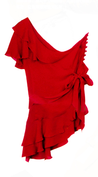 单肩、荷叶边、不对称下摆,三大精致细节奠定完美基调。丝质上衣 3550元/UNGARO