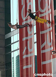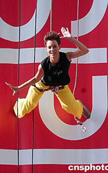 15名模特在楼高6层的外墙舞台上表演,优雅的动作淋漓尽致地把设计师的作品表演出来。