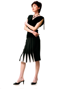 黑色有足够的能量“压”住各种别致的设计,黑白更是令人回味无穷的组合,在裙裾荡漾处泄露出点点风情。