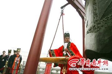 赞礼官敲响钟楼“景云钟”