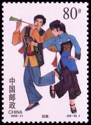 女戴黑头巾,着藏青或深蓝色短领右衽偏襟上衣(有的在颈口、袖口、襟底均绣有彩色花边)。有一暗兜藏于腹前襟内,随襟边缝置数对布结纽扣。下穿宽肥黑裤(也有的于裤脚沿口镶二道异色彩条),腰扎围裙。劳动时穿草鞋,并戴垫肩。在赶圩、歌场或节日穿绣花鞋。