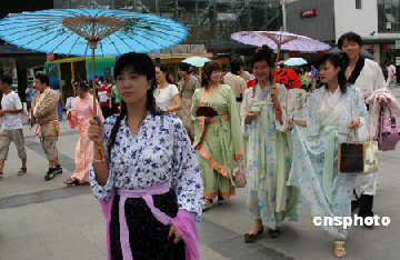 | 数十名来自苏锡常及上海地区的汉服爱好者身着宽袖长袍出现在闹市街头,向市民宣传汉服特色以增强对传统文化的认识和热爱。 |
