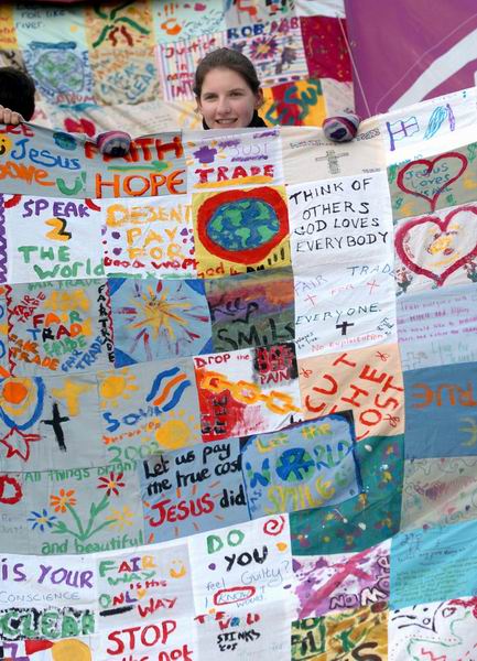 ”,衣服上贴着许多由英国孩子和年轻人手绘的布块。本次活动由一个民间组织筹划,