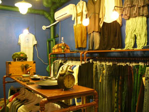 蓝色的墙壁透出平静,淡黄色的灯光照射在蓝色的墙壁上散发出柔和的灯光,蓝色的平和与淡黄色灯光的动感,完美的结合在一起,很漂亮。KAZOO的风格定位是年轻的、来自欧洲、日本时装,吸引不少时尚男女的青睐。年轻的你怎可错过这样的时尚小店,快来看看吧!