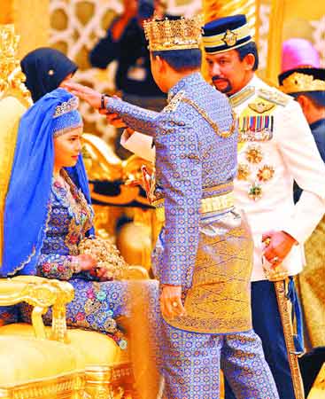 就在欧洲王室贵族们的聚散离合和诽闻逸事占据国际舞台上的票房排行榜时,上周进行的文莱王储大婚成为国际影院中的一匹“黑马”,当它的男女主角从金子铺就的星光大道上走来时,世界各地的观众不禁为这个东南亚袖珍岛国惊叹。金子和钻石铸造的礼花、镀金的婚车、镶金的华盖,无不是在向世人炫耀这个国家的富有,虽然王室奢华招来的舆论压力已让他们努力从俭,但毫无疑问,这依然是一出亚洲版的世纪豪华婚礼。