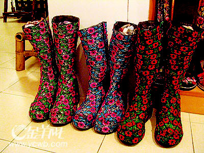说到“宝”,这里出售的一衣一裙,绣工和色彩都堪称一绝,而且分别是来自哈尼族的、布依族、傣族、苗族、佤族等不同少数民族的服装。没有经过机器的改良,也没有掺和任何现代服饰的元素,且每一件都经历过漫长岁月的考证,凝聚了手工缝制者的心血的作品。有的还是少数民族妇女花费了几年甚至一生的时间才缝制出来的,因此比起普通的服装更为弥足珍贵。令人称奇的是,无论是服装还是鞋子都是没有码数的,因此来小店光顾的每一位客人都要经过试穿,来找到适合自己尺寸的服装和鞋子,店员李小姐将此举称之为“缘分”。