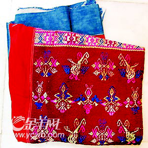由于是纯手工的制作,那些刺绣便也根据苗族妇女的意愿把龙、凤、牛、蝴蝶等代表吉祥物的图案绣上去,都具有造型奇特、想象丰富、色调强烈、风格古朴的特点,但却找不到同样的作品。如有一幅1800元的深蓝色织锦,采用的是各地流行的平锈,着重于图案布局的美观匀称,色调分明,给人以明显的物感。通常,刺绣品的价值可以从刺绣品的密度、年代的久远体现出来,不少人还喜欢把经历了几十年甚至上百年的刺绣品作为收藏品的一种。据了解,前来小店光顾的客人除了对刺绣有兴趣的外,还能不时见到“鬼佬”用半生不熟的汉语来砍价。