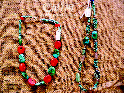 藏族首饰尽管做工粗糙,但有天珠、藏银、耗牛骨、绿松石、老蜜蜡等富有西藏民族特色的材料制成,而且造型、样式具有绝对的西藏风情,看来既古朴又有几分神秘气息,因此成了不少年轻人的新宠。在怡安小区那家店,笔者就看到有一店员佩戴着一个“天珠”圈,据她说天珠的颜色是越戴越亮的,果然当笔者拿起放在货架上的天珠比较一下,明显的不如店员身上戴的天珠的颜色那么透彻。作为一种尊贵的吉祥宝石,如果挑选天珠的话也要讲究眼缘。店员介绍说,不同图案的天珠能给主人带来不一样的运气,例如“单眼天珠“代表智慧,“双眼天珠”能保佑夫妻和睦,“三眼天珠”则能带来财运。在中华广场三楼的西藏饰物店,笔者还看到一款三百多元钱的绿松石项链非常受欢迎。作为饰物,绿松石与蓝宝石一起佩戴,能给人带来成功与幸运,它还能通过改变自身的颜色去提醒人们注意强壮身体。另外,你还可以找得到由松树脂经地底高温凝聚而成的蜜蜡、西藏八宝、十相自在等与佛法息息相关的吉祥物标志的项链。