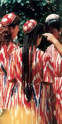 “维吾尔”是本族自称,一般认为含有“联合”、“协助”的意思,主要居住在天山以南的绿洲城镇,散居伊犁、北疆、东疆和乌鲁木齐市,大多聚居在天山以南的各个绿洲,也有少数分布在湖南省桃源、常德等县。2000年第四次全国人口普查统计公布,维吾尔族人口为8399393人。使用维吾尔语,属阿尔泰语系突厥语族。古代用回鹘文,11世纪传入伊斯兰教后,使用以阿拉伯字母为基础的老维吾尔文。中华人民共和国成立以后,曾经创制以拉丁字母为基础的新文字,80年代初又恢复使用了老维吾尔文。维吾尔人民勤劳勇敢,热情奔放,性格豪迈,并且能歌善舞,在漫长的历史发展过程中,还创造了丰富多彩的文化艺术。绚丽多姿的服饰便是维吾尔服饰文化的组成部分。维吾尔服饰形式清晰,纹饰多样,色彩鲜明,图案古朴,工艺精堪,其发展演变规律清楚,有些服饰款式与新疆出土衣物颇为相似,体现了一个地区、一个文化的历史沉淀。又具有鲜明的民族文化特色的审美接受范式,从中窥见民族服饰的传承性与地域性的习俗。