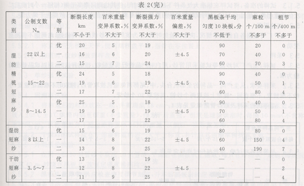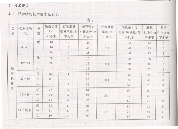 4.2.2亚麻纱的品等分优等、一等、二等;低于二等指标者作等外。