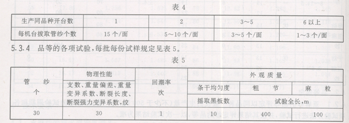 5.3.1 试样:生产厂对纱品等试验采用管纱,用户对产品进行质量验收,提出异议时,则以成品质量检验为准。