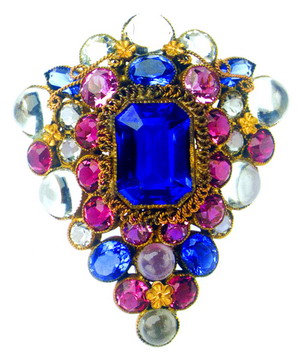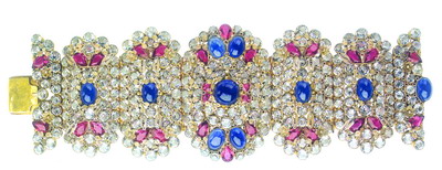 这个系统内,时装首饰总是扮演着重要角色。从18世纪第一件用银饰品和手工玻璃水晶制作的饰品到当今的塑料材料的创作,一直以来时装首饰成功的秘密是什么?首先,较之那些以全宝石或者贵重金属制作的高级首饰,便宜的或者半宝石和金属材料制作的首饰在花费上适中,这样可以促使消费者不断更换时装首饰,以此赋予一件西服、宽松上衣、衬衫式连衣裙或者晚装以故事性的体面注解。通过装饰,以不同的胸针或者以宽领带替换长项链,这些服装在每次穿着再次显示出全新面貌。第二点,时装首饰在创新造型方面有无限宽广的领域。新型时装首饰不断出现,因为制作的材料便宜,一般而言指的是过去不在时尚之列的金属、玻璃或者塑料等,这样使创作者的创造力没有限制,同时设计师在造型方法上不断试验,他们的设计灵感不仅来自真珠宝的时尚感,还来自时尚织物的色彩、现代艺术、日常生活用品。对于一位时装专家,能够区分Dior和