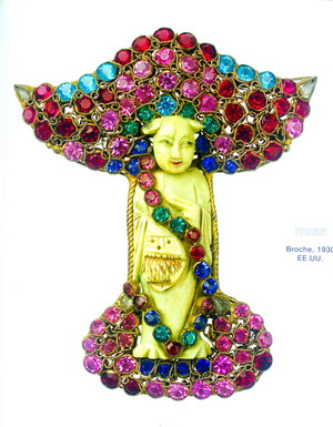 上枚胸针为HOBE1930年出品,设计灵感来自人物造型。