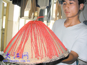 昨日,南昌大学的小郭向记者展示了他收藏的一顶清末官帽,官帽里还附有一张官帽生产厂家出示的“合格证”。